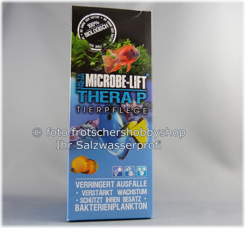 Stabilisiert das biologische Gleichgewicht und schafft "gesunde Verhältnisse" im Aquarium. TheraP steigert die Widerstandskraft der Fische und ist wirksam gegen Kranheitserreger. Es gibt kein vergleichbares Bakterien-Produkt auf dem Markt. Der gewisse Unterschied zwischen Bakterien und Technik. Nicht umsonst ist Ecological Laboratories der Marktführer und TheraP eines der meist verkauften Aquarium Produkte, in den USA.